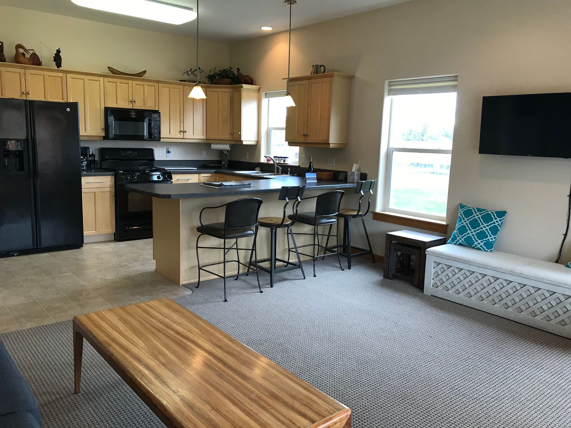 The Rocking CR Ranch Guesthouse has 2 bed 1 bath, and can sleep 4. With an open floor plan, it has a fully-equipped kitchen, open-style living room, strong wifi, desk area, and a smart TV.