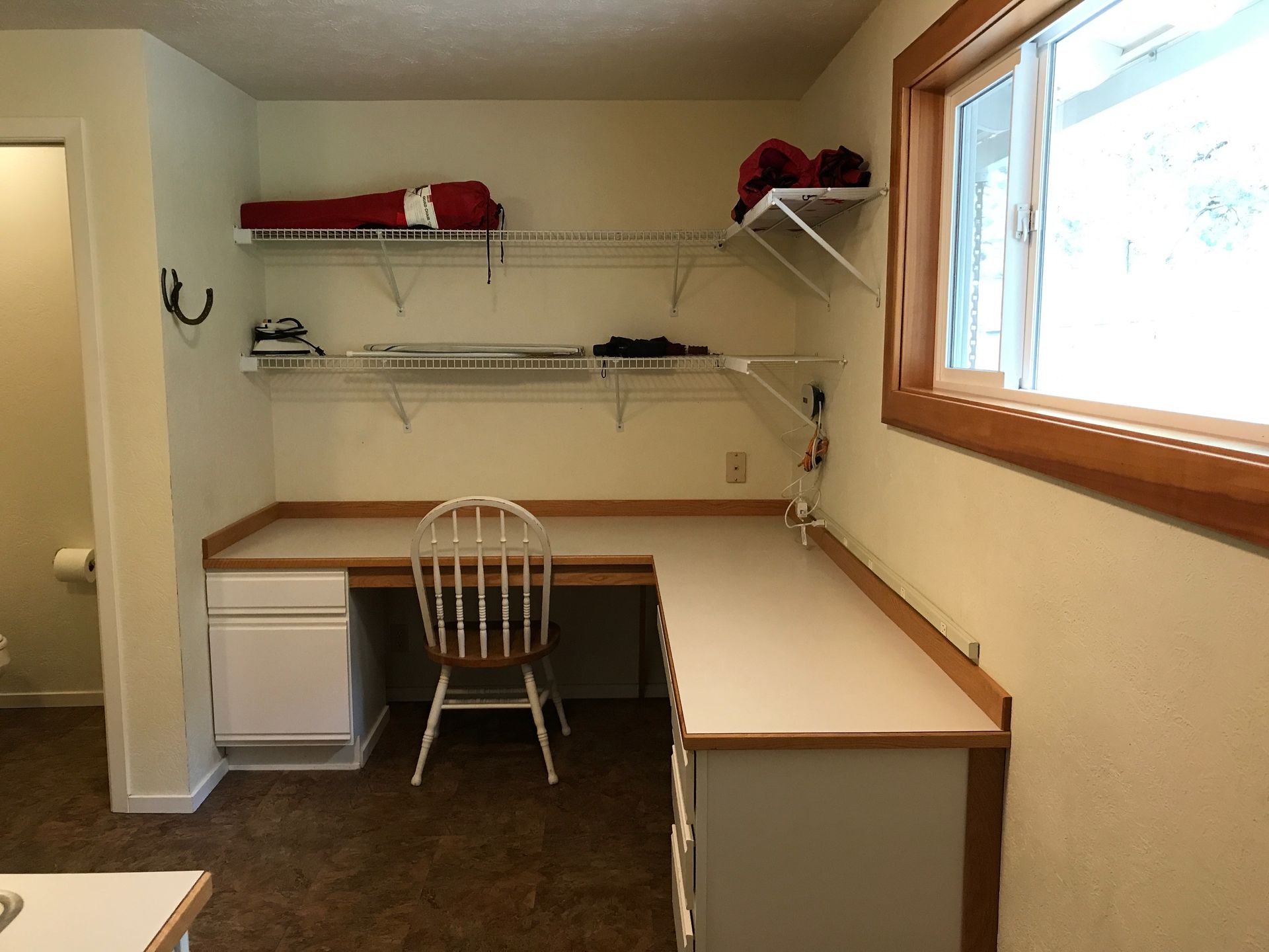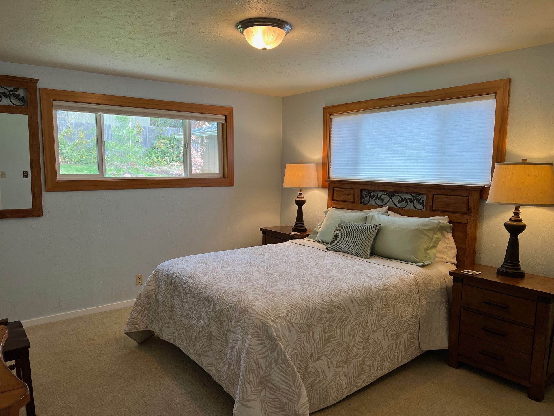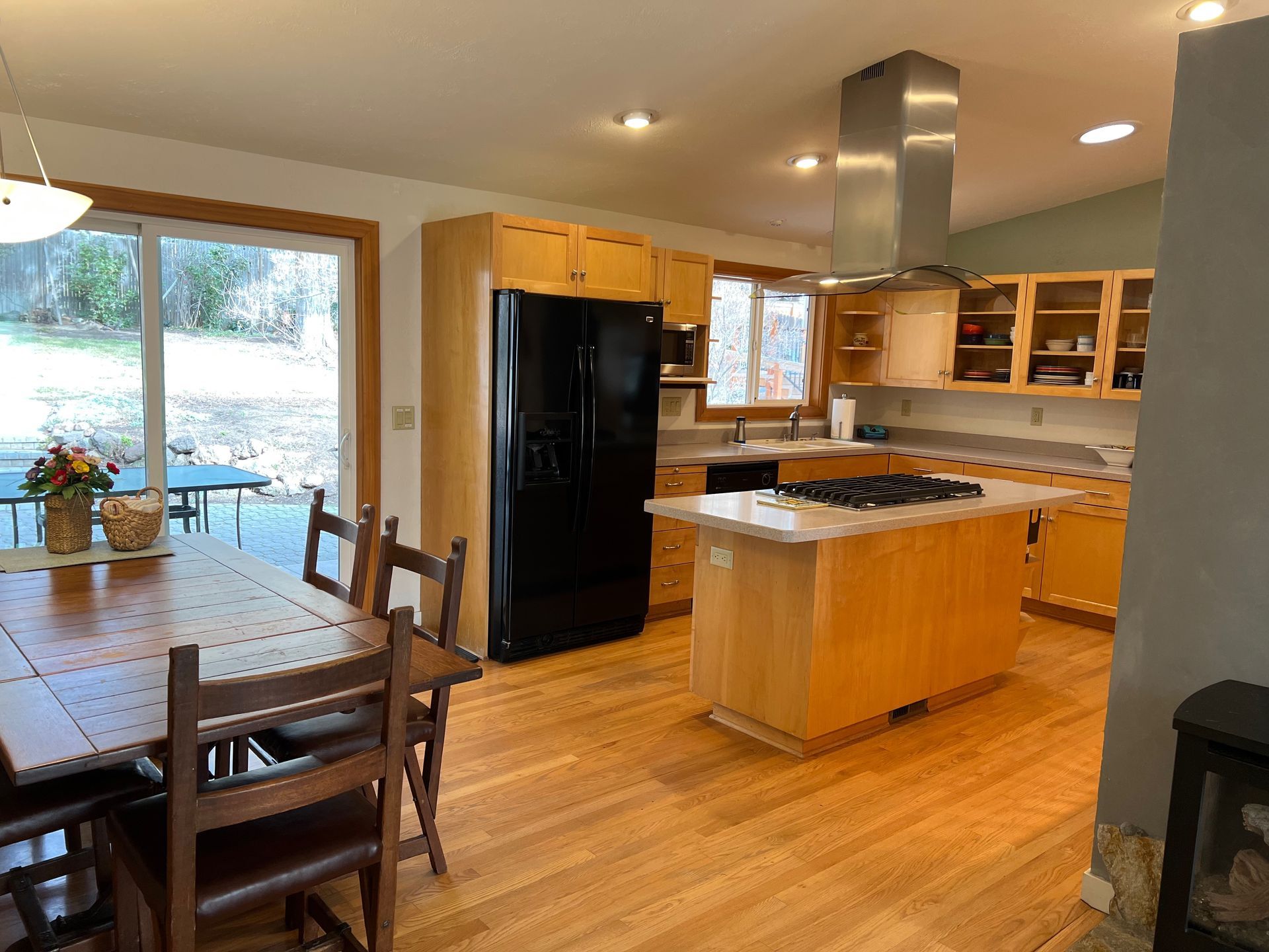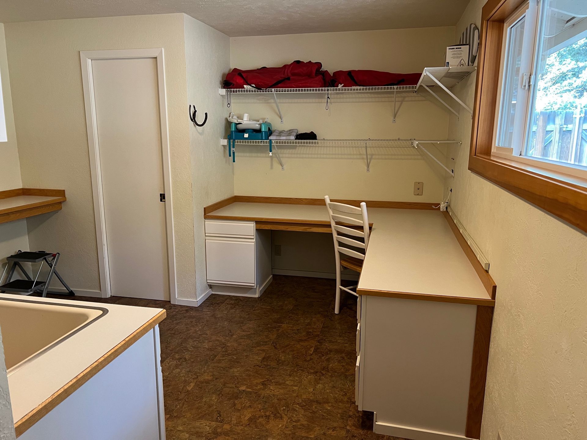 There is a fully-equipped large open area kitchen next to a large dining table and 6 chairs. You'll discover strong wifi, smart TV and a large desk area for remote working vacations, or for creative activities like sewing, scrapbooking, writing, etc. There is an outdoor patio with eating area and a firepit for evening relaxation and conversation in our large fenced backyard.
